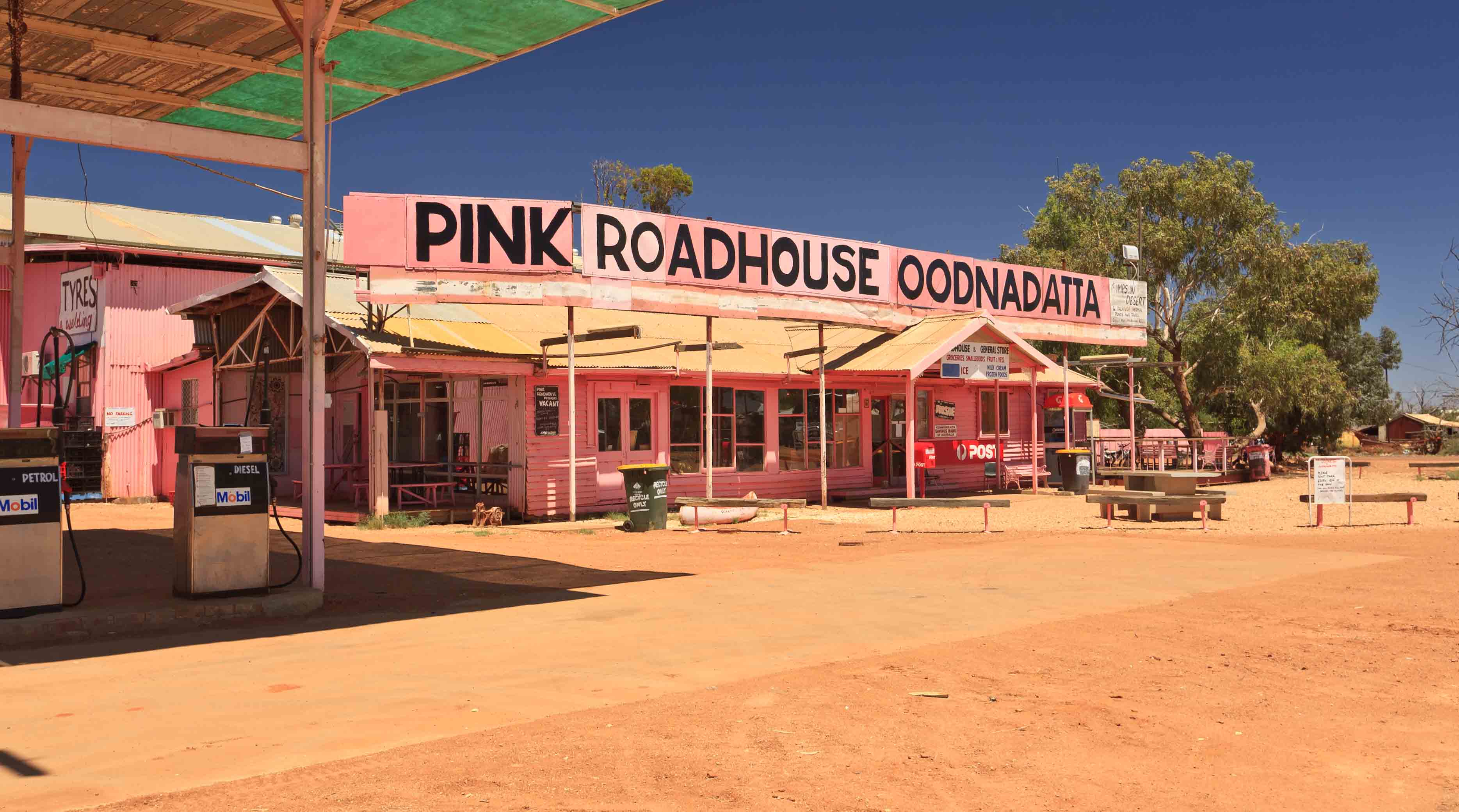 In Oodnadatta tanken we bij het "Pink Roadhouse" . Schijnt er beroemd te zijn maar we ontmoetten daar alleen een suffige juffrouw die zelfs niet wist waat "Mount Dare" lag. Dat was een beetje ongelukkig want normaal hadden ze in een roadhouse verteld dat je voor die route een "Desert Pass" nodig had. Maar daar kwamen we later op een ongelukkig moment zelf nog achter. Mount Dare ligt in de "Simpson Dessert".